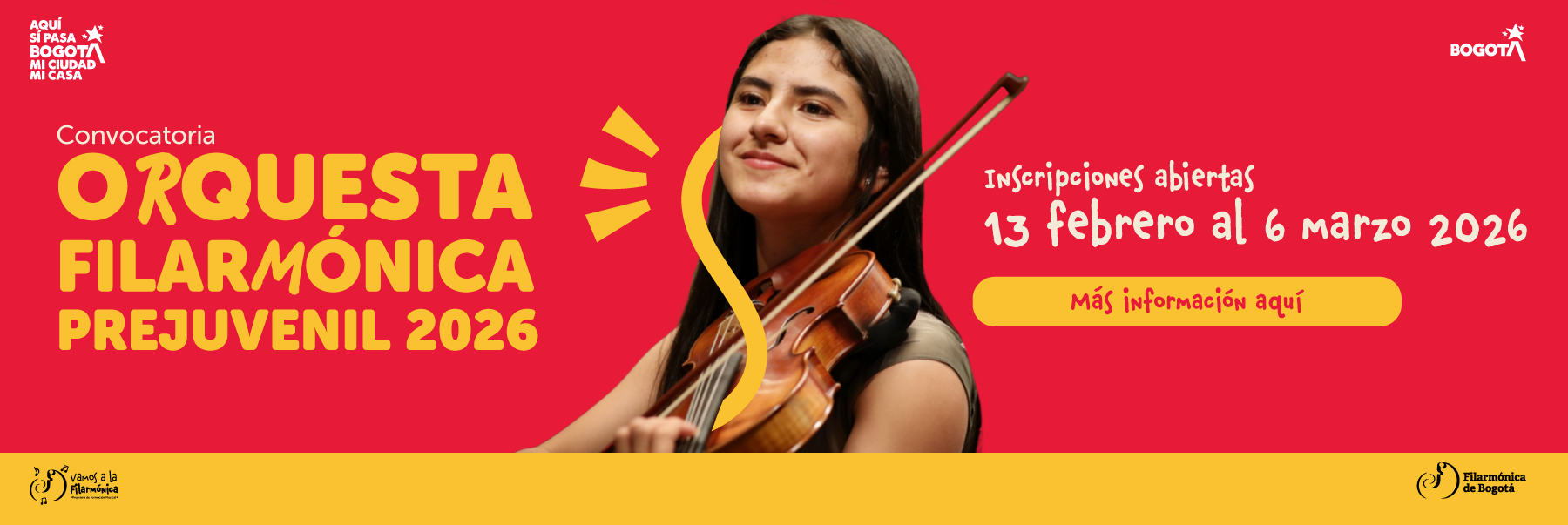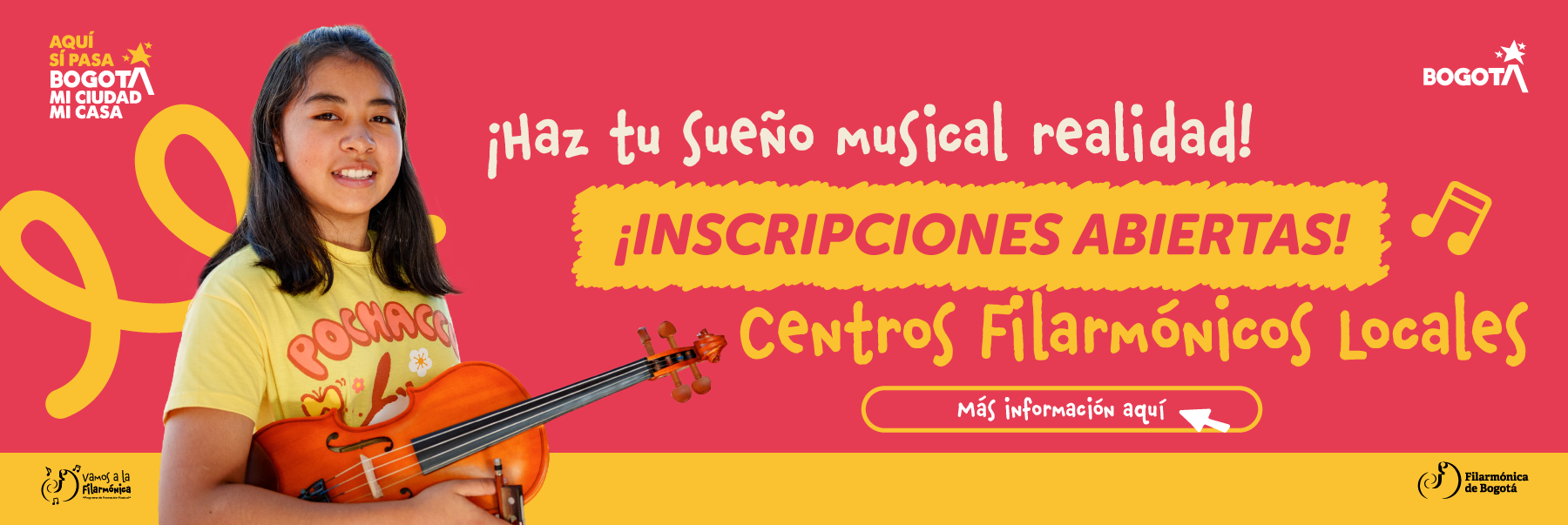 La Orquesta Filarmónica de Bogotá invita a todos los niños, niñas, jóvenes y adolescentes, para que se inscriban a los Centros Filarmónicos Locales. Leer más aquí